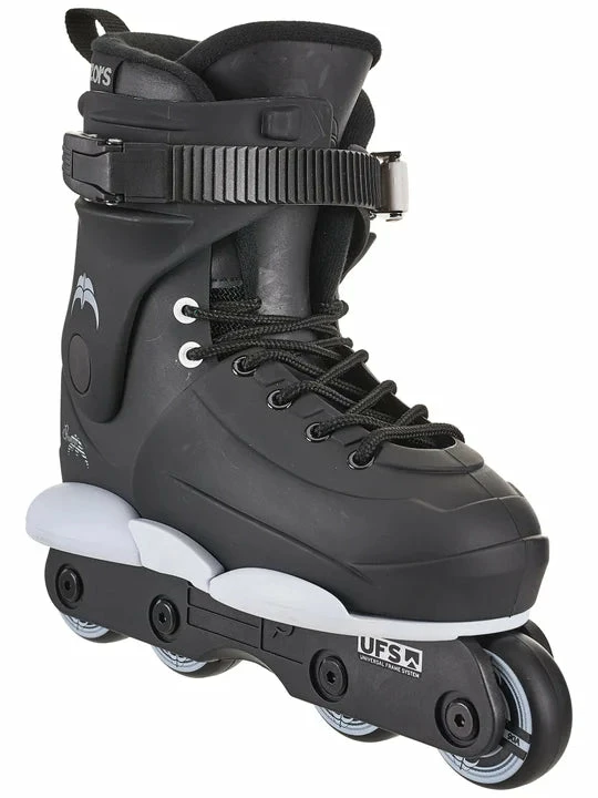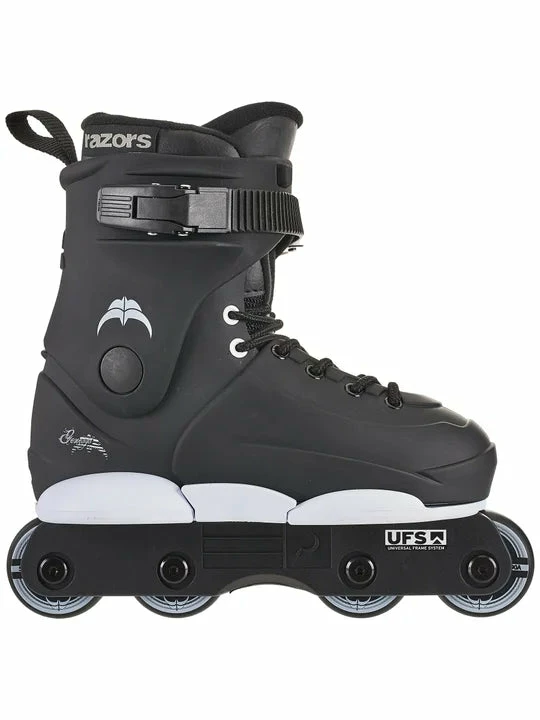 Two boot shells are attached to the soul frame platform allowing it to adjust to the front AND back by simply removing the front wheel and front frame mounting bolt. This creates a sturdy connection that ensures the balance remains unchanged. The buckle was updated from previous models and the liners are the same construction as those used in Razors adult skates. Choose from a flat setup (eight 56mm wheels down) or anti-rocker (four 56mm wheels down with 42mm anti-rockers in the middle positions). Ground Control UFS mount frames, 6mm axles, and ABEC3 bearings.Â