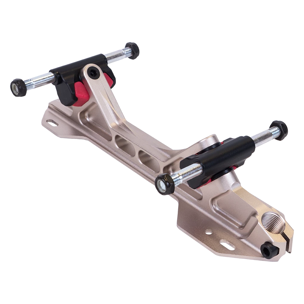 The PowerDyne Arius Platinum features the same revolutionary design as the original Arius with upgrades in key areas that improve performance and ease-of-use. Toe stop bolt is now found at the very front of the Arius Platinum, instead of behind the toe stop. This provides greater clamping power for secure stops, starts and other toe stop maneuvers. The trucks of the Arius Platinum also receive a significant update, with a “winged” truck body that securely holds the Split Butterfly Cushions in place with no need for any other stabilization or adjustment hardware. Finished in platinum color, the Arius Platinum is lighter, stronger, more stable, more powerful, more maneuverable, more durable.