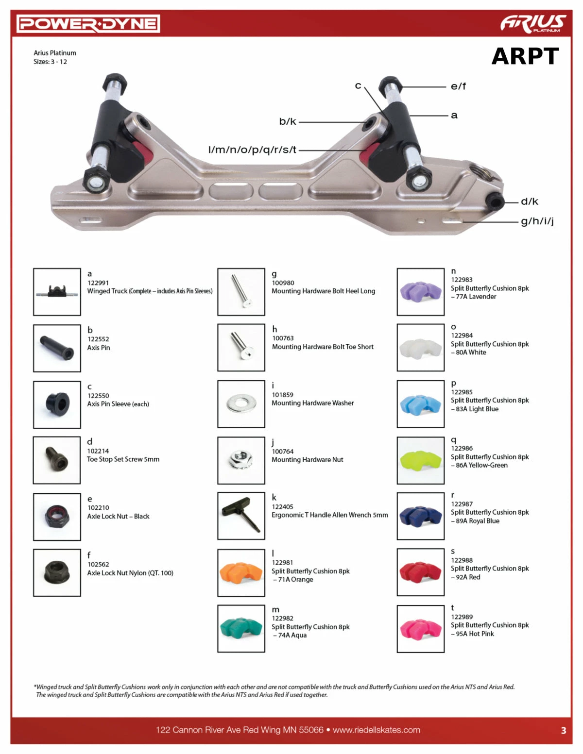 The PowerDyne Arius Platinum features the same revolutionary design as the original Arius with upgrades in key areas that improve performance and ease-of-use. Toe stop bolt is now found at the very front of the Arius Platinum, instead of behind the toe stop. This provides greater clamping power for secure stops, starts and other toe stop maneuvers. The trucks of the Arius Platinum also receive a significant update, with a “winged” truck body that securely holds the Split Butterfly Cushions in place with no need for any other stabilization or adjustment hardware. Finished in platinum color, the Arius Platinum is lighter, stronger, more stable, more powerful, more maneuverable, more durable.