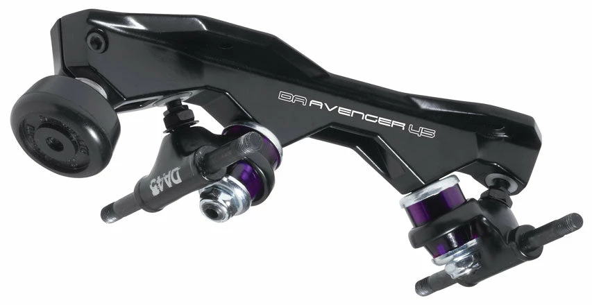 The Avenger plate concept was derived from the 45 degree Magnum and 45 degree Invader skate plates of the late 70’s early 80’s. Over the last few years a lot of emphasis has been placed on strong light weight products for speed and derby. In the 80’s we developed the single action Magnum speed plate for this purpose, produced in both aluminum and magnesium, this plate was very light and very strong. Recently we have seen a greater awareness for this style plate; we saw it fitting to redesign it using modern technology and what we came up with was the Avenger. Using a computer aided design program every inch of this plate was designed for a purpose; specific wall thickness, heights, lengths, angles, and material were all chosen for their unique properties. The avenger will be produced in both aluminum and magnesium and both will come standard with the new DA45 truck. The Avenger aluminum will be painted black and the magnesium plate will be painted white. All the superior track hugging agility you have come to expect from the DA45 action in a new lightweight skate.