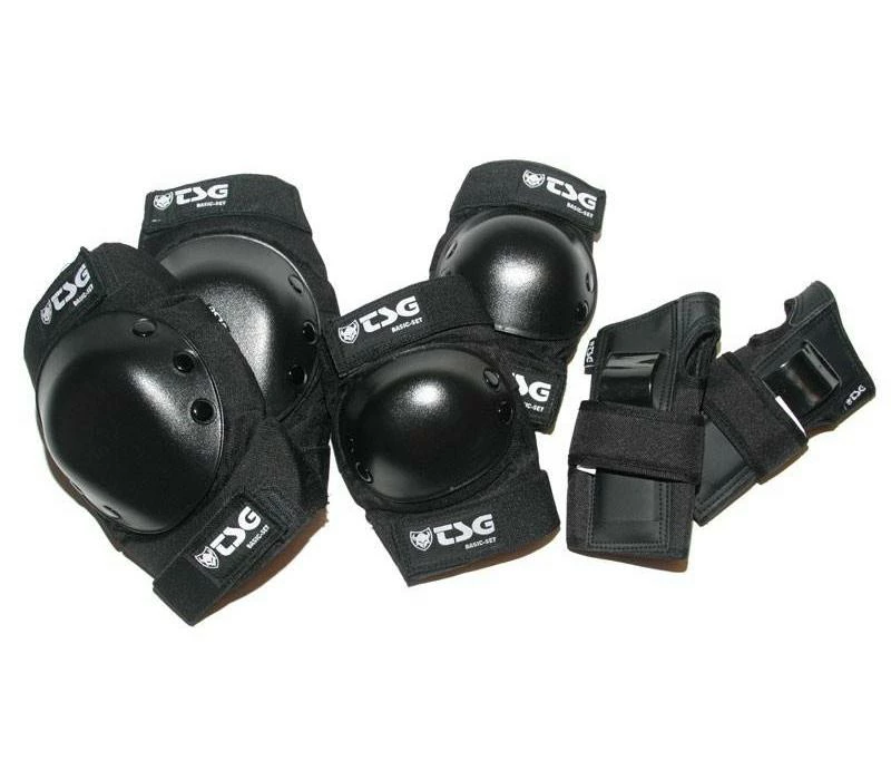 This set of TSG Skate pads includes a set of knee pads, elbow pads and wrist guards for beginners recreational skating. The elbow and knee pads feature EVA cup foam and PE caps to provide protection against impacts and abrasions. The wrist guards stabilise hands and wrists with full straps and palm splint.